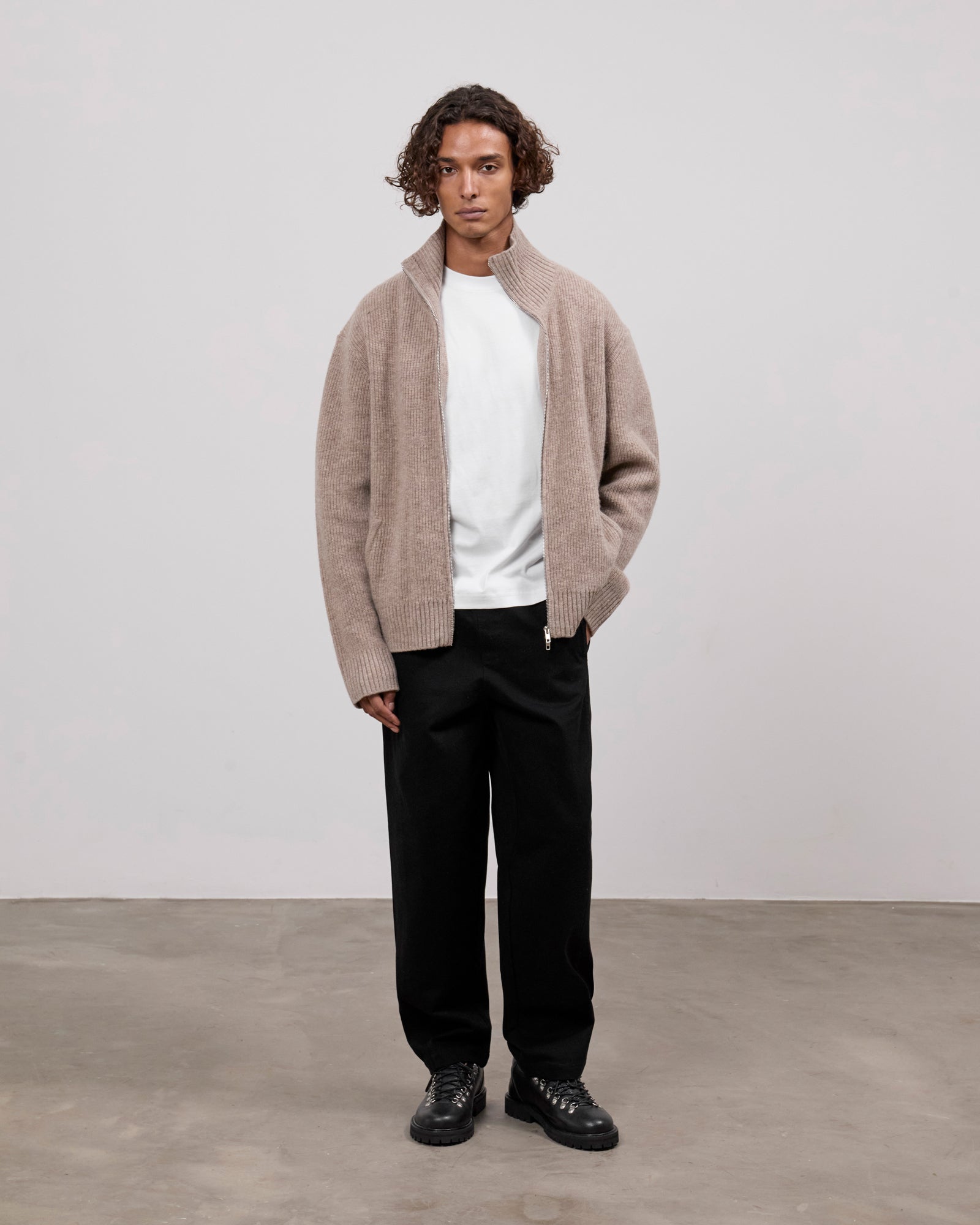 oatmeal colour way with silver zipper